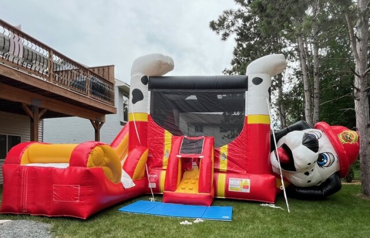 Sound the alarm for BIG fun! The Fire Dog Belly Bouncer Combo features a spacious bounce house area, inflatable ramp, climb, and slide — all in one adorable fire-dog design. This wet/dry unit can be reserved dry or upgraded with water for an extra splash of excitement. This lovable Marshal look-alike bounce house is a huge hit with little ones and a perfect choice for fire station events, birthday parties, and community celebrations!