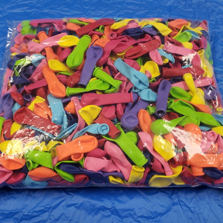 Extra Balloons-Aprox. 720Water Wars:Extra Balloons-Aprox. 7201Dropdown03196393_32026550000A bulk bag of approximately 720 colorful water balloons — the perfect extra supply for your Water Wars event. These standard-size latex balloons come mixed in bright colors so you can refill fast and keep the action going without pausing to tie single packs. Ideal as a backup or to support large groups and continuous play, they’re lightweight to store and easy to fill, letting teams splash, strategize, and enjoy extended water fights. (Color mix varies; count is approximate.)